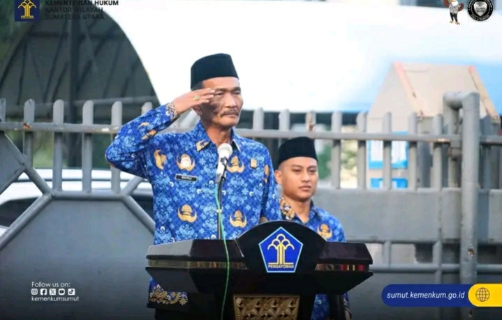 TIMELINES INEWS INVESTIGASI, Medan Kantor Wilayah Kementerian Hukum Sumatera Utara melaksanakan Upacara Peringatan Hari Korps Pegawai Republik Indonesia (KORPRI) ke-54 bertempat di lapangan upacara Kanwil Kementerian Hukum Sumatera Utara. Upacara berlangsung tertib dan khidmat serta diikuti oleh tiga instansi, yaitu Kanwil Kementerian Hukum Sumut, Kanwil Kementerian Hak Asasi Manusia Sumut, dan Kanwil Direktorat Jenderal Imigrasi Serta UPT Balai Harta Peninggalan Medan, Senin (01/12/2025).