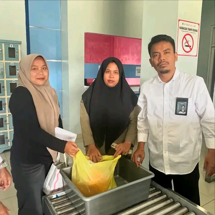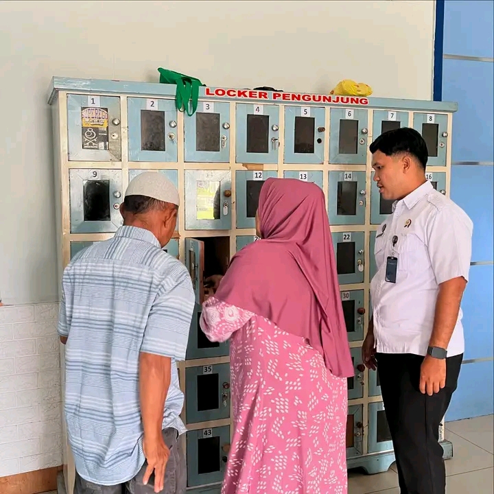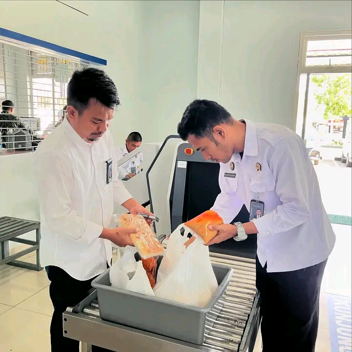 Sebelum memasuki area kunjungan, keluarga warga binaan mengikuti pemeriksaan administrasi, pengecekan barang bawaan, serta melalui tahapan pemeriksaan keamanan oleh petugas.