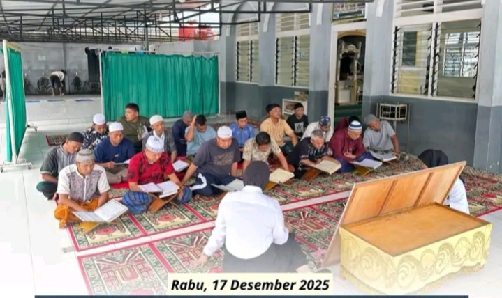 TIMELINES INEWS INVESTIGASI, Padangsidimpuan, Lembaga Pemasyarakatan (Lapas) Kelas IIB Padangsidimpuan kembali menggelar kegiatan pembinaan kepribadian berupa pembelajaran Al-Qur’an bagi warga binaan. Kegiatan ini dilaksanakan di Masjid Al-Ikhlas Lapas Padangsidimpuan dengan melibatkan peserta magang Batch II sebagai pengajar, Rabu (17/12/2025)