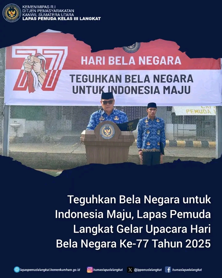 TIMELINES INEWS INVESTIGASI Langkat Lembaga Pemasyarakatan (Lapas) Pemuda Kelas III Langkat menggelar Upacara Peringatan Hari Bela Negara ke-77 Tahun 2025 di Lapangan Upacara Lapas Pemuda Langkat, Jumat (19/12/2025).