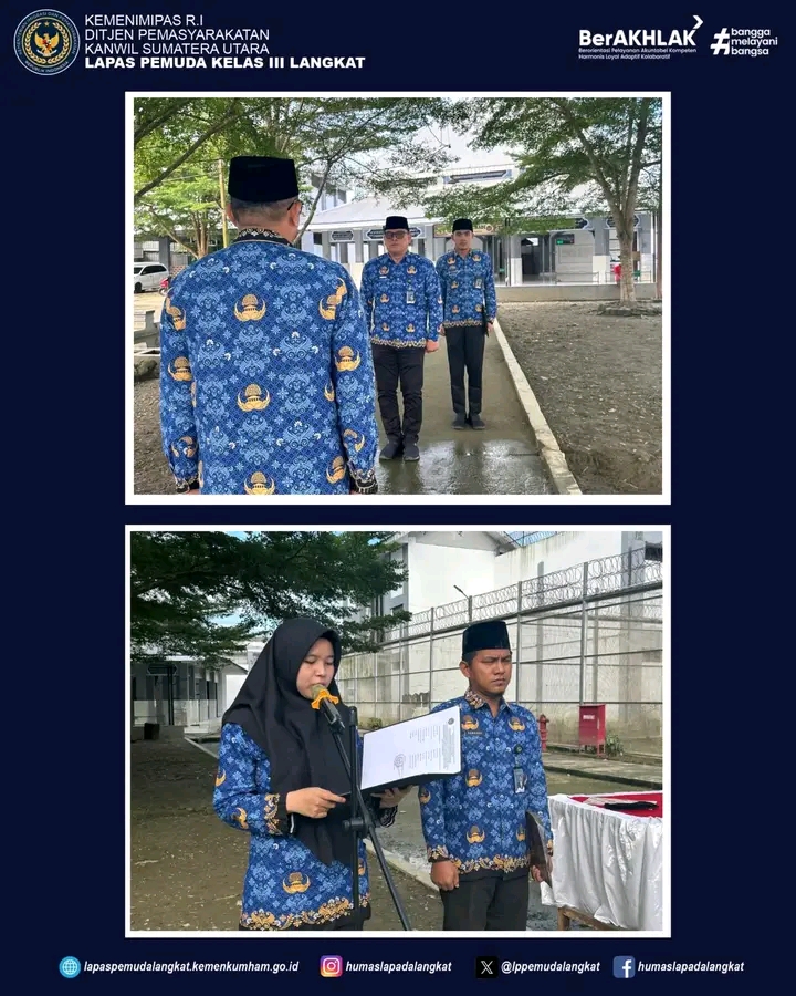 Upacara berlangsung khidmat dengan Kepala Lapas Pemuda Langkat, Kenal Purba, bertindak sebagai Inspektur Upacara. Kegiatan ini diikuti oleh seluruh pegawai, peserta magang, serta warga binaan pemasyarakatan.