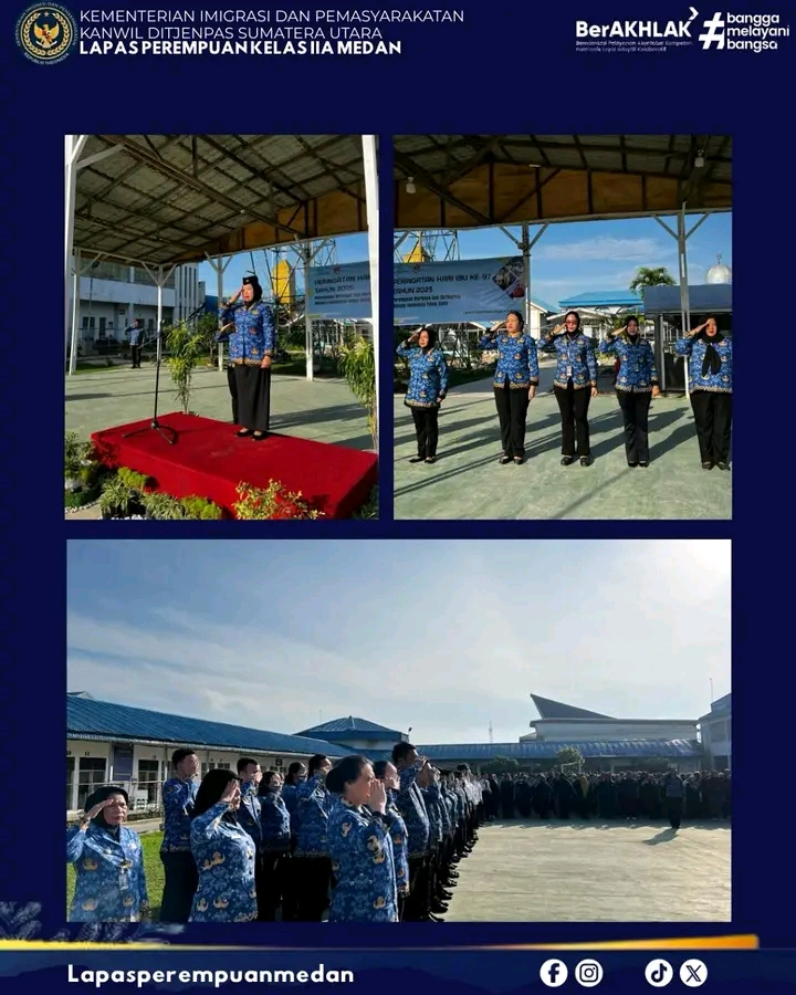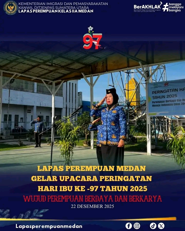 TIMELINES INEWS INVESTIGASI, Medan Lembaga Pemasyarakatan (Lapas) Perempuan Kelas IIA Medan menggelar Upacara Peringatan Hari Ibu ke-97 Tahun 2025 dengan khidmat dan penuh makna, Senin (22/12/2025). Kegiatan yang berlangsung di Lapangan Laperdan ini dipimpin langsung oleh Kepala Lapas Perempuan Kelas IIA Medan, Yekti Apriyanti.