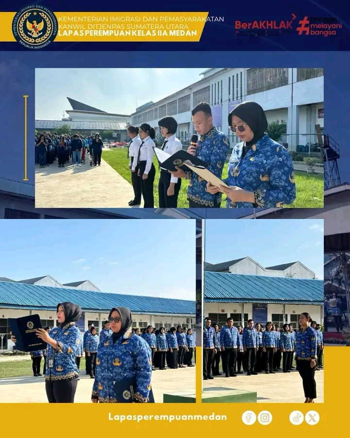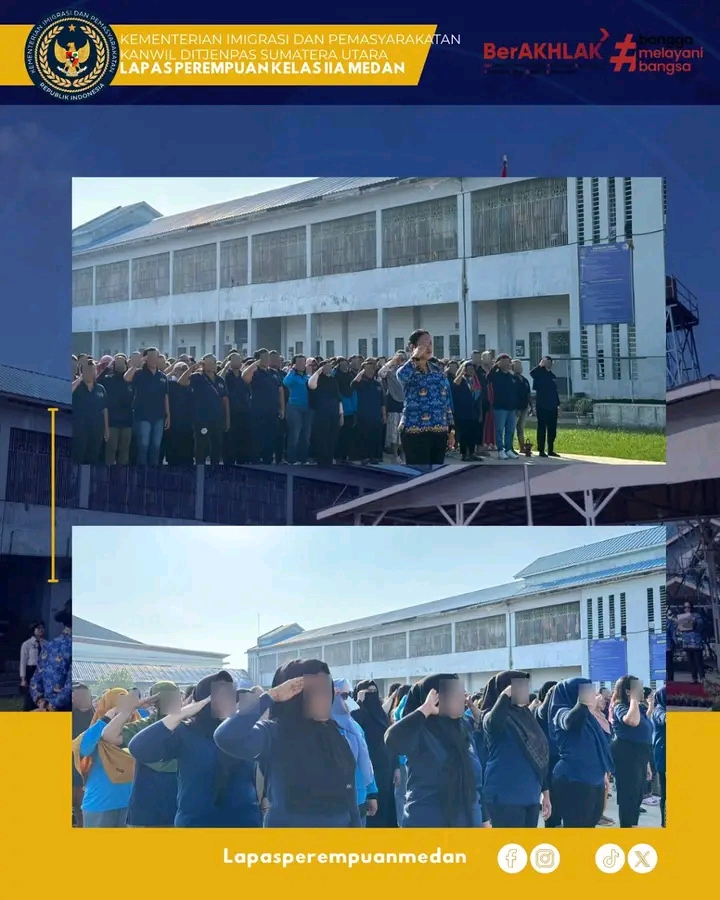TIMELINES INEWS INVESTIGASI, Medan Lembaga Pemasyarakatan (Lapas) Kelas IIA Perempuan Medan menggelar upacara peringatan Hari Korps Pegawai Republik Indonesia (KORPRI) ke-54 pada Senin (01/12/2025). Upacara berlangsung khidmat di lapangan upacara Laperdan dan diikuti oleh seluruh jajaran pegawai, staf, serta warga binaan pemasyarakatan.