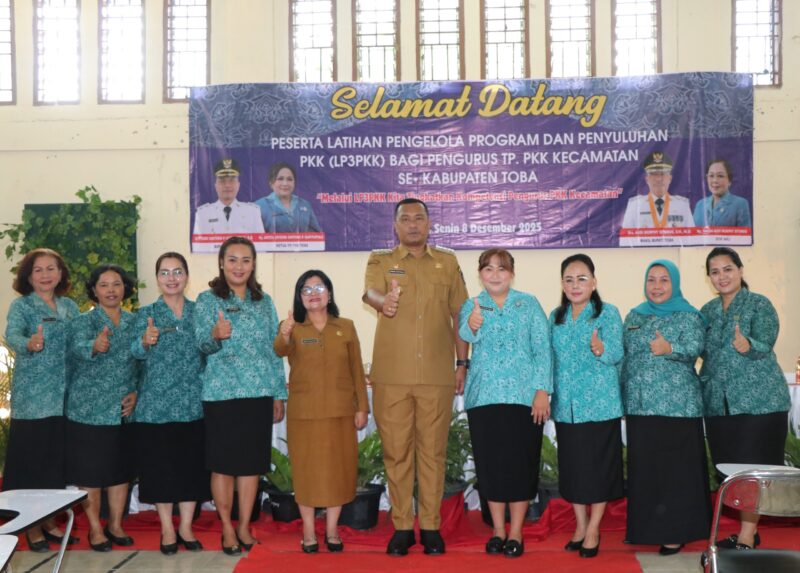 TLii | Sumut | Toba: Tim Penggerak PKK Kabupaten Toba bersama Dinas Pemberdayaan Masyarakat Desa, Perempuan dan Perlindungan Anak melaksanakan Latihan Pengelola Program dan Penyuluhan PKK (LP3PKK) bagi Pengurus TP PKK Kecamatan se-Kabupaten Toba. Kegiatan berlangsung di Gedung Sentra Pemuda Dinas Pendidikan, Pemuda dan Olahraga Kabupaten Toba dengan mengusung tema “Melalui LP3PKK Kita Tingkatkan Kompetensi Pengurus PKK Kecamatan. Senin (08/12/2025).