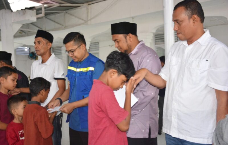 Walikota Langsa, Jeffry Sentana saat menyerahkan santunan uang tunai kepada anak yatim/piatu di Gampong Seuriget, Kecamatan Langsa Barat, (Foto : Humas Diskominfo Langsa)