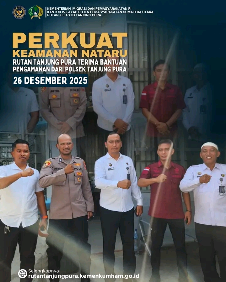 TIMELINES INEWS INVESTIGASI, Tanjung Pura Dalam menjaga stabilitas serta mencegah gangguan keamanan dan ketertiban selama Hari Raya Natal 2025 dan menjelang Tahun Baru 2026, Rumah Tahanan Negara Kelas IIB Tanjung Pura terima bantuan pengamanan dari Polsek Tanjung Pura. Jumat (26/12)