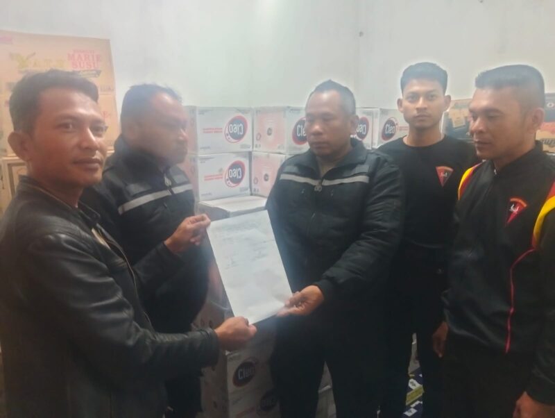 Bantuan yang di distribusikan, antara lain berupa 200 kardus Aqua, 70 Kardus Indomie dan 15 kardus biskuit kering