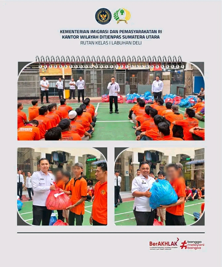 Kegiatan tersebut dipimpin langsung oleh Kepala Rutan Kelas I Labuhan Deli, Eddy Junaedi, dan diikuti oleh seluruh pejabat struktural Rutan Labuhan Deli. Penyaluran perlengkapan kebersihan dilakukan secara merata ke seluruh kamar di blok hunian guna memastikan setiap warga binaan memperoleh fasilitas kebersihan yang layak.