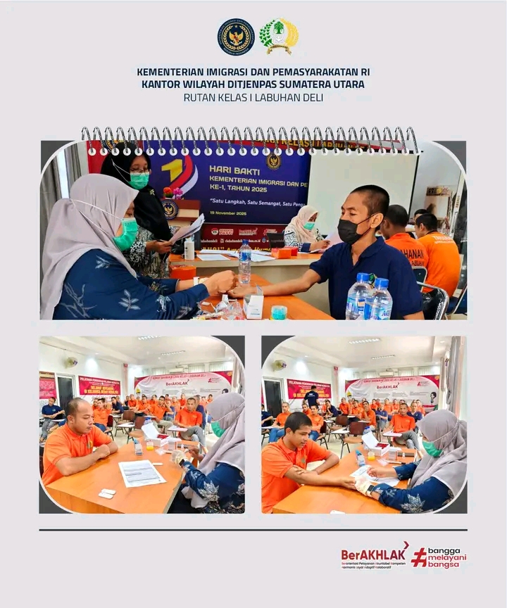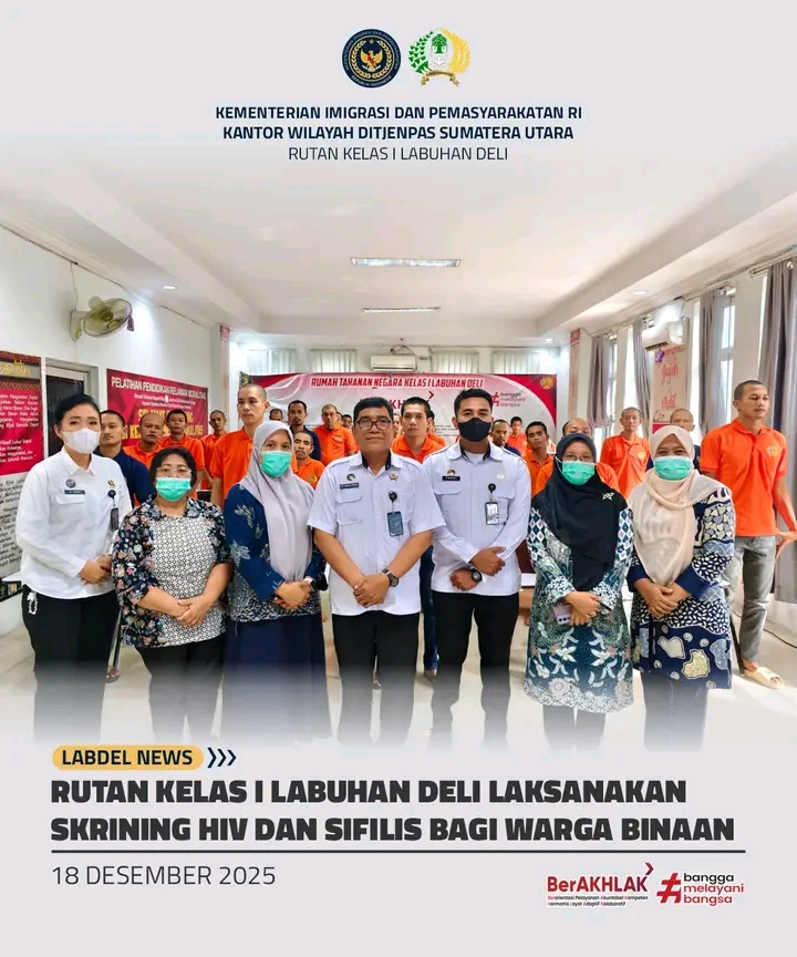 Dalam rangka meningkatkan derajat kesehatan serta upaya pencegahan penyakit menular di lingkungan pemasyarakatan, Rumah Tahanan Negara (Rutan) Kelas I Labuhan Deli melaksanakan kegiatan skrining HIV dan sifilis bagi Warga Binaan Pemasyarakatan (WBP), Kamis (18/12).
