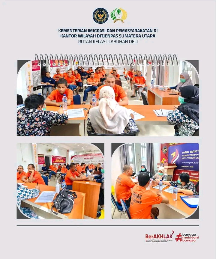 Kegiatan skrining kesehatan ini berlangsung di Lantai 2 Ruang Moralitas Rutan Kelas I Labuhan Deli dan dilaksanakan melalui kerja sama dengan Puskesmas Medan Deli.