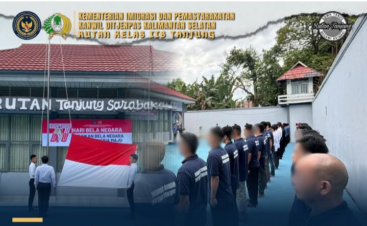 TIMELINES INEWS INVESTIGASI, Tanjung, Rumah Tahanan Negara (Rutan) Kelas IIB Tanjung memperingati Hari Bela Negara ke-77 Tahun 2025 dengan menggelar upacara secara khidmat pada Jumat (18/12/2025). Kegiatan ini mengusung tema “Teguhkan Bela Negara untuk Indonesia Maju” sebagai bentuk komitmen dalam menanamkan nilai-nilai nasionalisme, cinta tanah air, serta pengabdian kepada bangsa dan negara.