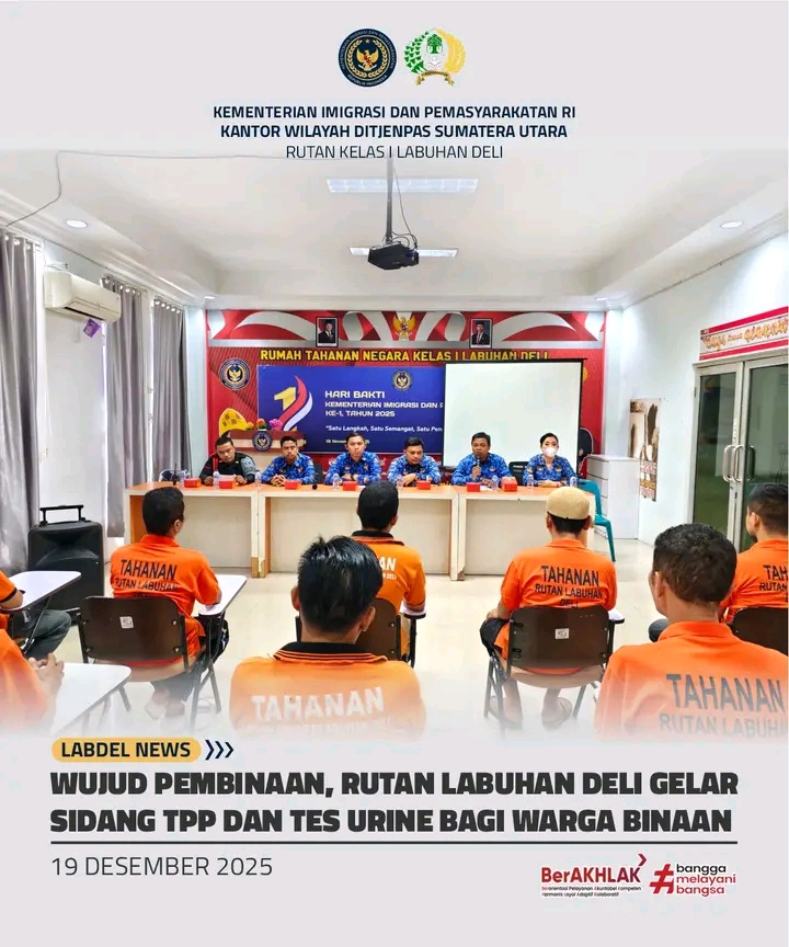 TIMELINES INEWS INVESTIGASI, Labuhan Deli Sebanyak 19 orang Warga Binaan Pemasyarakatan (WBP) Rumah Tahanan Negara (Rutan) Kelas I Labuhan Deli mengikuti Sidang Tim Pengamat Pemasyarakatan (TPP) yang dilaksanakan di Ruang Moralitas Lantai 2 Rutan Labuhan Deli, Jumat (19/12/2025).