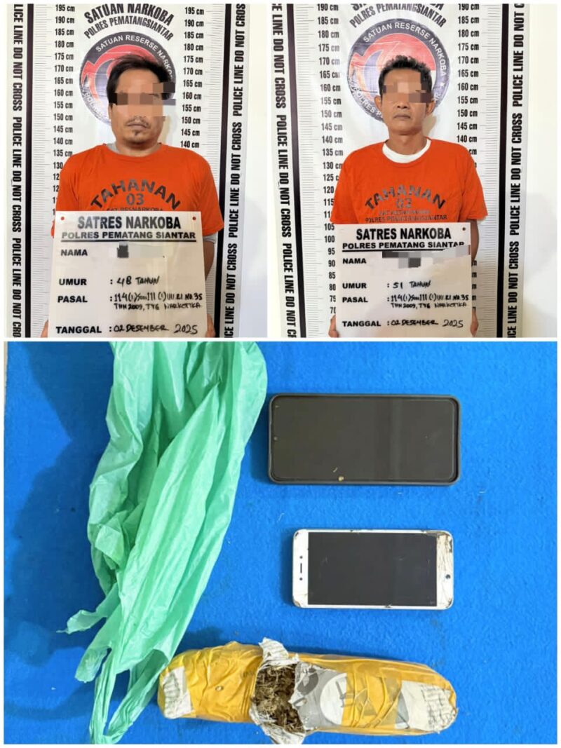 TLii|SUMUT|SIANTAR|Satuan Reserse Narkoba Polres Pematangsiantar berhasil menangkap dua laki laki paruh baya memiliki ganja berat bruto 115,5 gram di Jalan Pdt J.Wismar Saragih Gang Prima Kelurahan Pondok Sayur Kecamatan Siantar Martoba Kota Pematangsiantar, pada Selasa 2 desember 2025 sore sekira pukul 16.30 WIB.