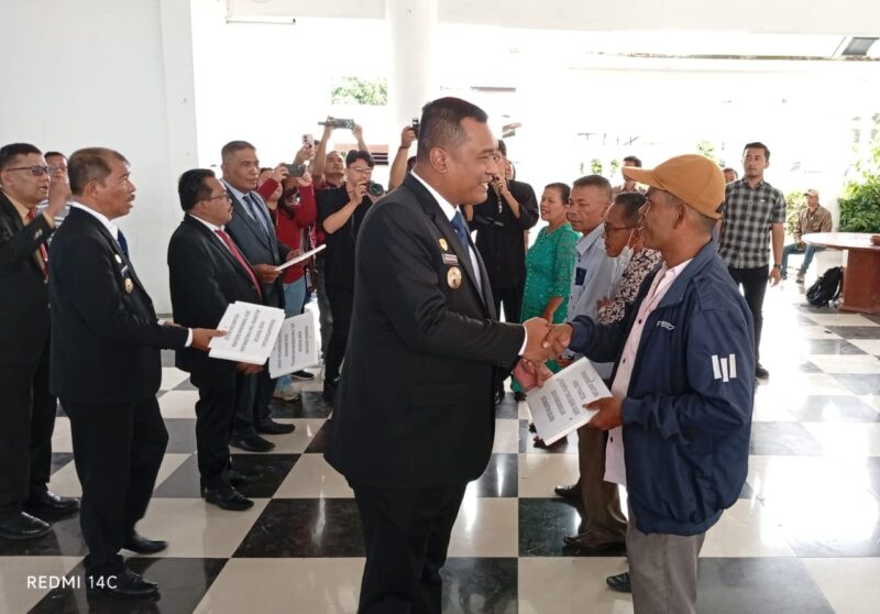TLii I Sumut I Toba : Pemerintah Kabupaten Toba melalui Dinas pertanian menyerahkan bantuan kepada 85 kelompok tani yang ada di Kabupaten Toba. Bupati Toba Effendi Sintong P. Napitupulu didamping oleh Wakil Bupati Toba Audi Murphy O. Sitorus, Ketua DPRD Toba Franshendrik Tambunan dan Pj. Sekda Toba Paber Napitupulu menyerahkan bantuan tersebut secara simbolis kepada para penerima di pendopo rumah dinas bupati, sebelum merayakan acara natal oikumene Sabtu (27/12/2025).
