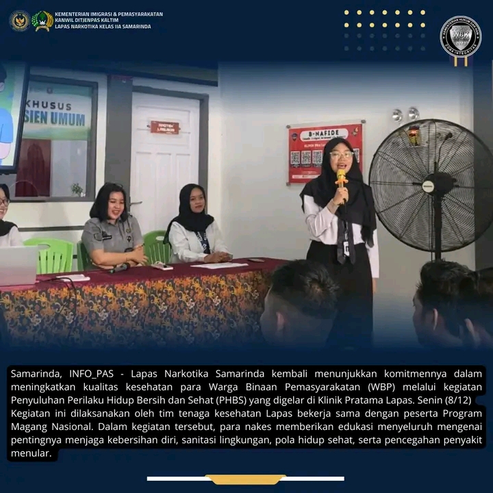 TIMELINES INEWS INVESTIGASI, Samarinda, Lapas Narkotika Samarinda kembali menunjukkan komitmennya dalam meningkatkan kualitas kesehatan para Warga Binaan Pemasyarakatan (WBP) melalui kegiatan Penyuluhan Perilaku Hidup Bersih dan Sehat (PHBS) yang digelar di Klinik Pratama Lapas. Senin (8/12)