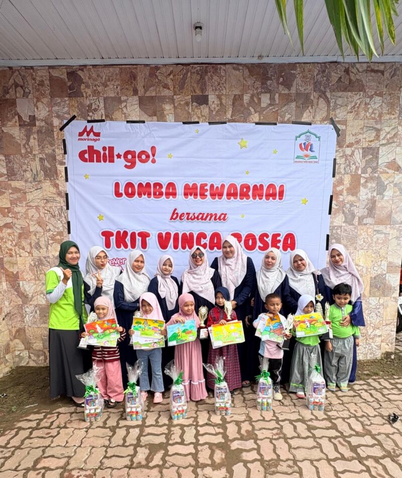 TLii|Aceh|Lhokseumawe —kamis 18 Desember 2025, TKIT Vinca Rosea Tahfiz Internasional menggelar lomba mewarnai bagi anak usia dini yang berlangsung meriah dan penuh antusiasme. Kegiatan ini diselenggarakan sebagai bagian dari upaya pengembangan kreativitas dan motorik halus anak sejak usia dini, dengan dukungan sponsor dari PT Kalbe melalui produk Chil-Go Morinaga.