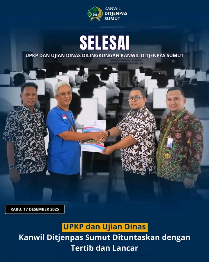 Dengan berakhirnya hari kedua pelaksanaan, rangkaian UPKP dan Ujian Dinas di lingkungan Kanwil Ditjenpas Sumut resmi ditutup. Selanjutnya, hasil ujian akan diproses sesuai ketentuan yang berlaku sebagai dasar penilaian dan pengembangan karier pegawai ke depan, Tutupnya.