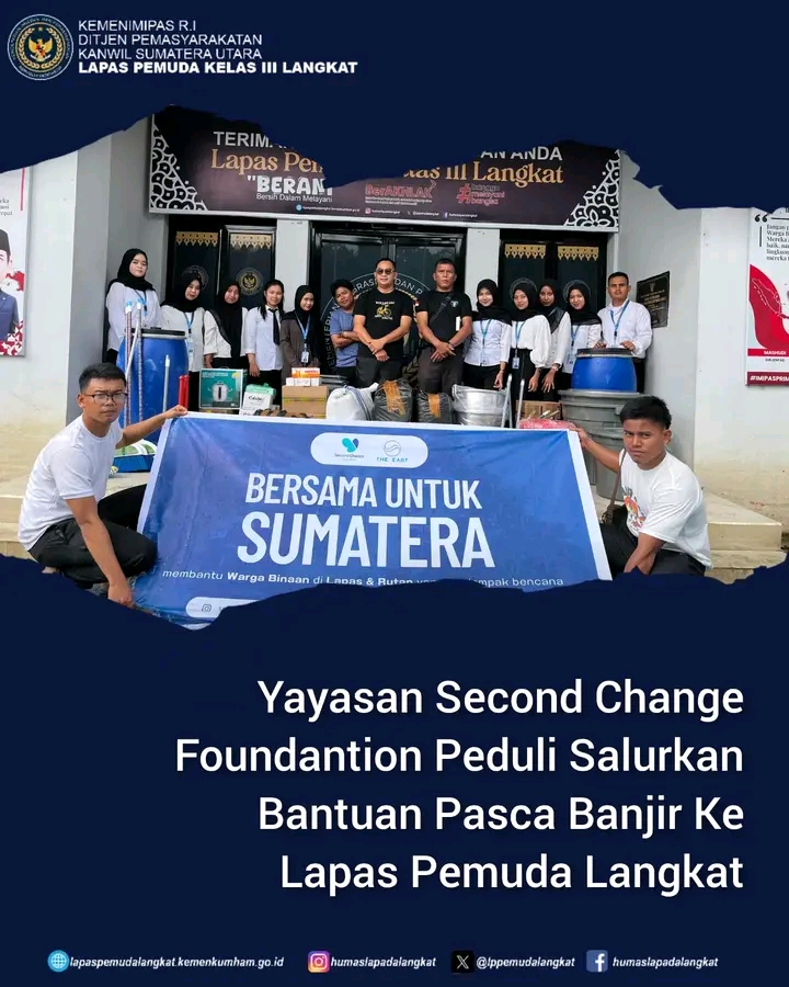 Bentuk kepedulian dan rasa tanggungjawab hadir dari Yayasan Second Chance Foundation, pada tanggal 16 Desember menyalurkan bantuan logistik kepada warga binaan terdampak banjir di Lapas Pemuda Langkat.