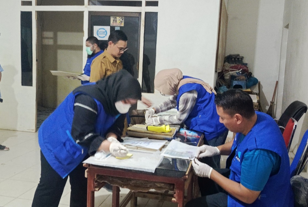 Tim ANRI praktikan penyelamatan arsip vital pascabanjir di Kota Langsa, (Foto : Timelinesinews.com)