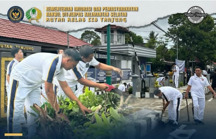 TIMELINES INEWS INVESTIGASI, Tanjung, Rumah Tahanan Negara (Rutan) Kelas IIB Tanjung melaksanakan kegiatan gotong royong membersihkan lingkungan kantor dan rumah dinas, Jumat (9/1/2026). Kegiatan ini diikuti oleh seluruh pegawai sebagai wujud kepedulian terhadap kebersihan, kerapian, dan kenyamanan lingkungan kerja.
