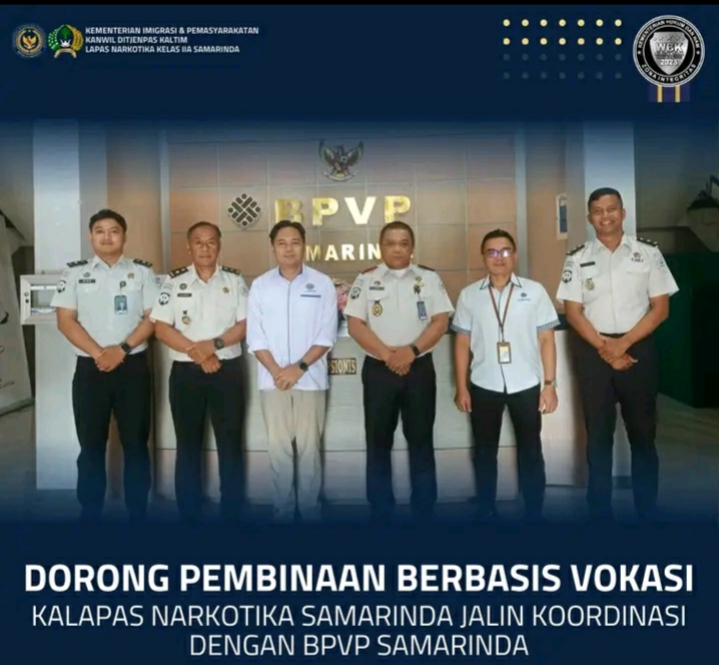 TIMELINES INEWS INVESTIGASI, Samarinda, Kepala Lembaga Pemasyarakatan (Kalapas) Narkotika Kelas IIA Samarinda, Jaka Prihatin, melaksanakan kunjungan kerja ke Balai Pelatihan Vokasi dan Produktivitas (BPVP) Samarinda dalam rangka koordinasi terkait penguatan program pembinaan dan pelatihan keterampilan bagi Warga Binaan Pemasyarakatan (WBP), Selasa (20/1)
