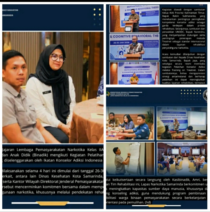 TIMELINES INEWS INVESTIGASI, Samarinda Jajaran Lembaga Pemasyarakatan Narkotika Kelas IIA Samarinda melalui Tim Pembinaan Narapidana dan Anak Didik (Binadik) mengikuti kegiatan Pelatihan Konselor Adiksi melalui Training on Treatnet yang diselenggarakan oleh Ikatan Konselor Adiksi Indonesia (IKAI) Provinsi Kalimantan Timur, Jumat (29/1/2026).