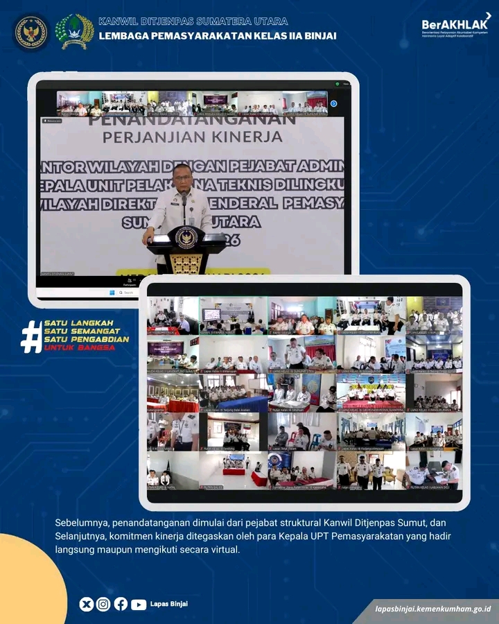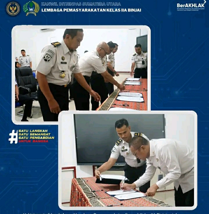 Penandatanganan dipimpin langsung oleh Kepala Kanwil Ditjenpas Sumatera Utara, Yudi Suseno, dan dilaksanakan secara hybrid, mengombinasikan kehadiran langsung dan partisipasi virtual para Kepala UPT Pemasyarakatan di seluruh Sumatera Utara.