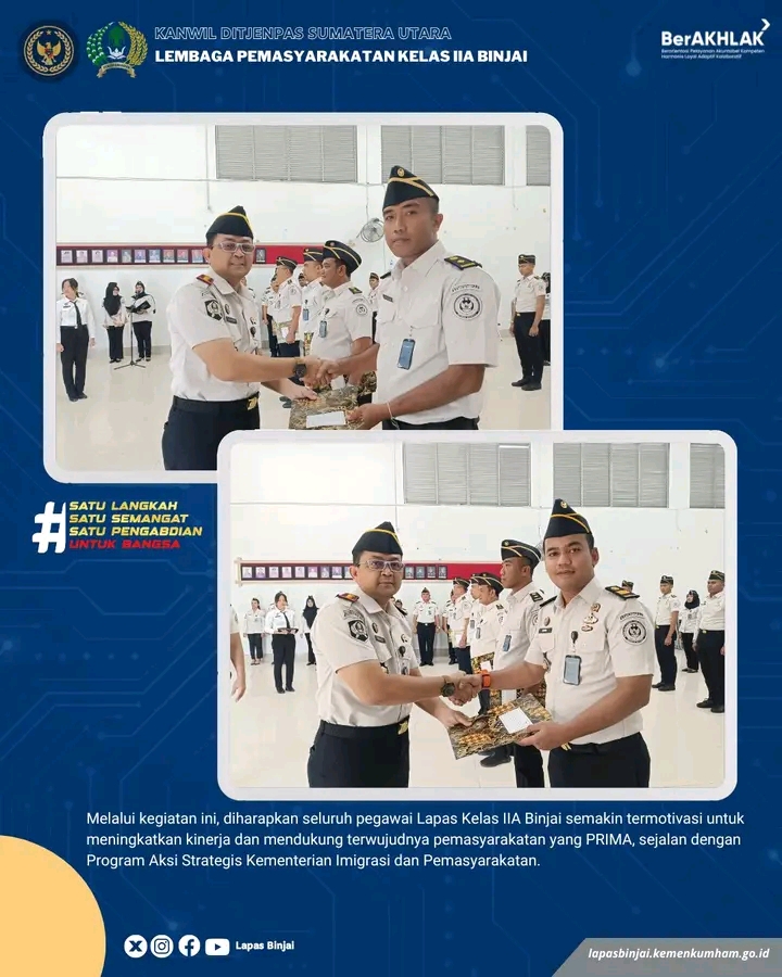 Melalui kegiatan ini, diharapkan seluruh pegawai Lapas Kelas IIA Binjai semakin termotivasi untuk meningkatkan kinerja dan berkontribusi aktif dalam mewujudkan pemasyarakatan yang PRIMA, sejalan dengan Program Aksi Strategis Kementerian Imigrasi dan Pemasyarakatan, Terangnya.