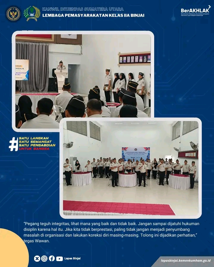 Dengan terlaksananya kegiatan ini, diharapkan seluruh jajaran Lapas Kelas IIA Binjai dapat menjalankan tugas secara optimal serta berkontribusi nyata dalam mewujudkan pemasyarakatan yang profesional, berintegritas, dan berdampak bagi masyarakat, Terangnya.