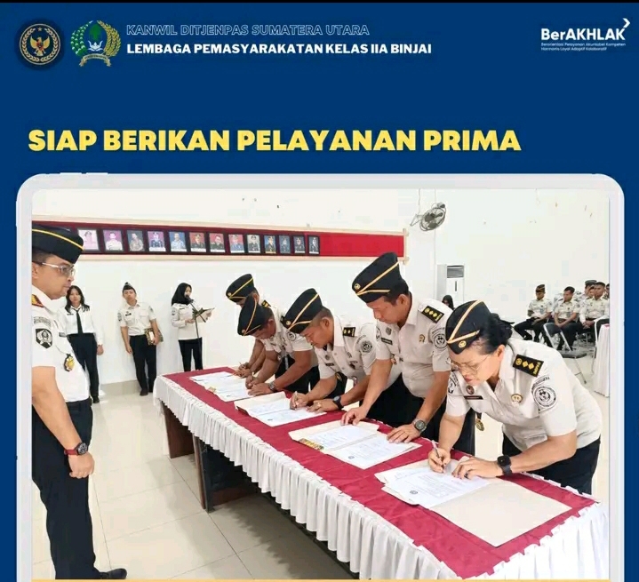 TIMELINES INEWS INVESTIGASI Binjai, Lembaga Pemasyarakatan (Lapas) Kelas IIA Binjai menggelar kegiatan Penandatanganan Perjanjian Kinerja Tahun 2026 yang diikuti oleh seluruh pegawai, Rabu (7/1/2026). Kegiatan ini menjadi langkah awal dalam menyamakan komitmen serta arah pelaksanaan tugas dan fungsi seluruh jajaran di tahun 2026.
