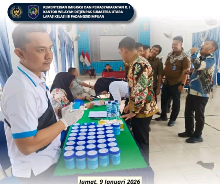 TIMELINES INEWS INVESTIGASI, Padangsidimpuan Lembaga Pemasyarakatan (Lapas) Kelas IIB Padangsidimpuan menggandeng Badan Narkotika Nasional (BNN) Tapanuli Selatan dalam pelaksanaan tes urine terhadap seluruh pegawai, Jumat (11/1/2026). Kegiatan ini merupakan upaya memperkuat komitmen pemberantasan narkoba di lingkungan pemasyarakatan.