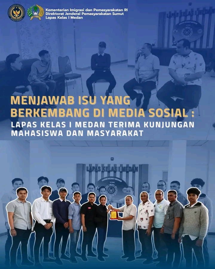 Dalam keterangannya, Plh Kepala Lapas Kelas I Medan, Andik Irawan, A.Md.IP., S.H., M.H., menyampaikan apresiasi atas kunjungan dan dukungan yang diberikan oleh mahasiswa dan masyarakat sebagai bagian dari proses evaluasi dan peningkatan kinerja institusi.