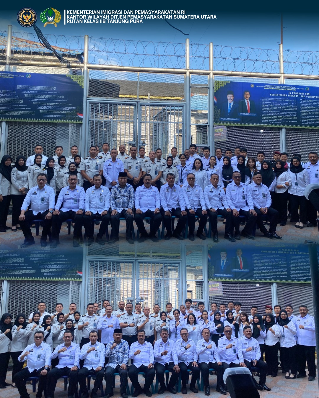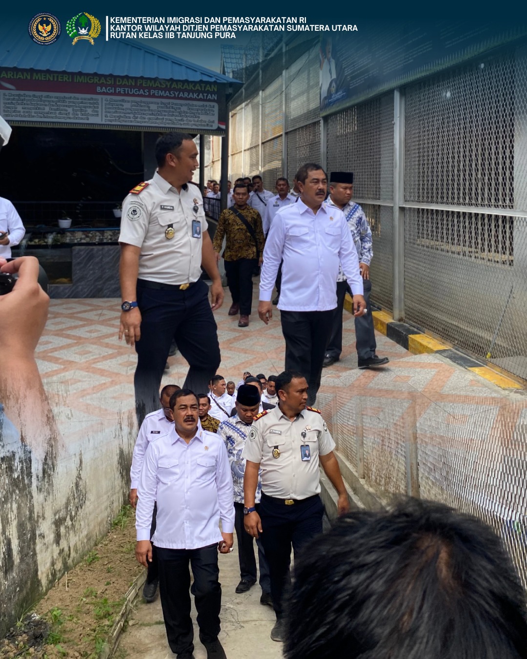 Dalam kunjungan tersebut, Menteri Imigrasi dan Pemasyarakatan didampingi oleh Direktur Jenderal Pemasyarakatan Mashudi dan Kepala Kantor Wilayah Direktorat Jenderal Pemasyarakatan Sumatera Utara Yudi Suseno, beserta jajaran. Rombongan disambut langsung oleh Kepala Rutan Kelas IIB Tanjung Pura, Fransisco Pandia, bersama pejabat struktural dan jajaran pegawai Rutan.