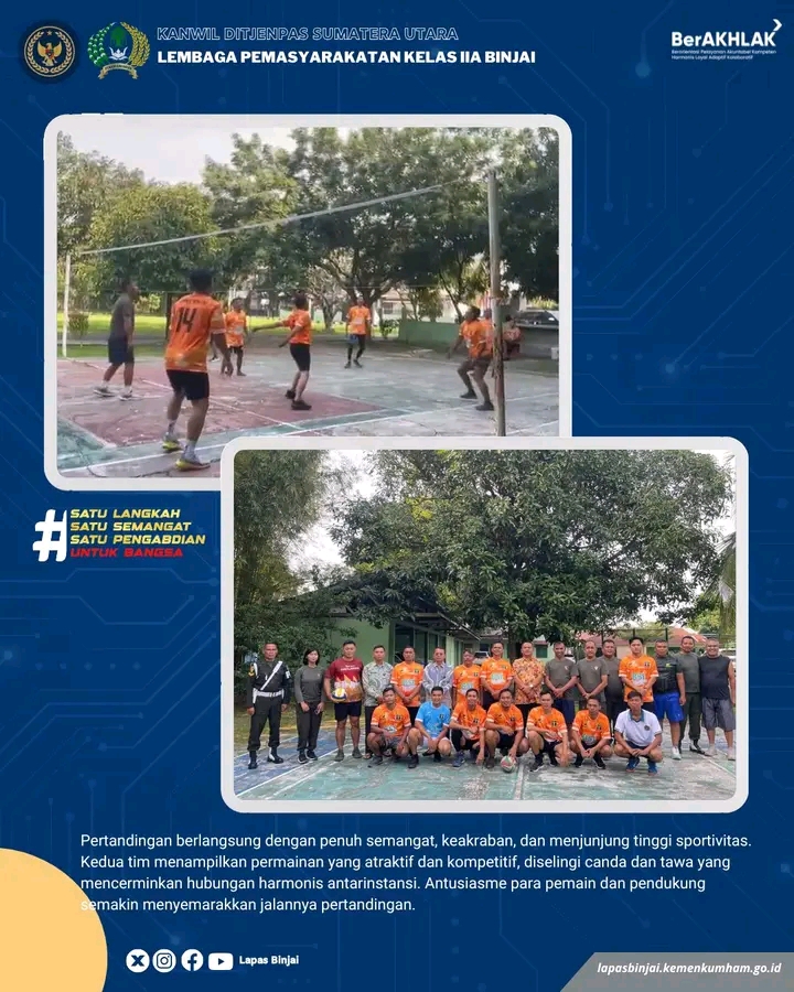 TIMELINES INEWS INVESTIGASI, Binjai Lembaga Pemasyarakatan (Lapas) Kelas IIA Binjai menggelar pertandingan voli persahabatan bersama Polisi Militer Subdenpom 1/5-2 Binjai sebagai wujud penguatan sinergitas dan soliditas antarinstansi. Kegiatan ini dilaksanakan di lapangan voli Polisi Militer Subdenpom 1/5-2 Binjai, Jumat (23/01/2026).