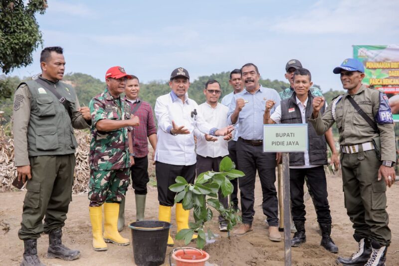 TLii..PIDIE JAYA – Pemerintah Kabupaten Pidie Jaya mengambil langkah proaktif dalam pemulihan lingkungan pascabencana dengan menggelar aksi penanaman 300 pohon di kawasan GP Seunong, Kecamatan Meurah Dua. Kegiatan yang dipimpin langsung oleh Bupati Pidie Jaya, H. Sibral Malasyi, MA, S.Sos, ME, ini bertujuan untuk mengembalikan fungsi ekologis lahan yang rusak akibat banjir dan tanah longsor.