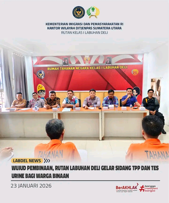 Melalui pelaksanaan Sidang TPP dan tes urine ini, Rutan Labuhan Deli berharap warga binaan semakin termotivasi untuk terus berperilaku baik, mematuhi tata tertib, serta aktif mengikuti seluruh program pembinaan yang diselenggarakan, guna mendukung proses reintegrasi sosial yang lebih optimal, Tegasnya.