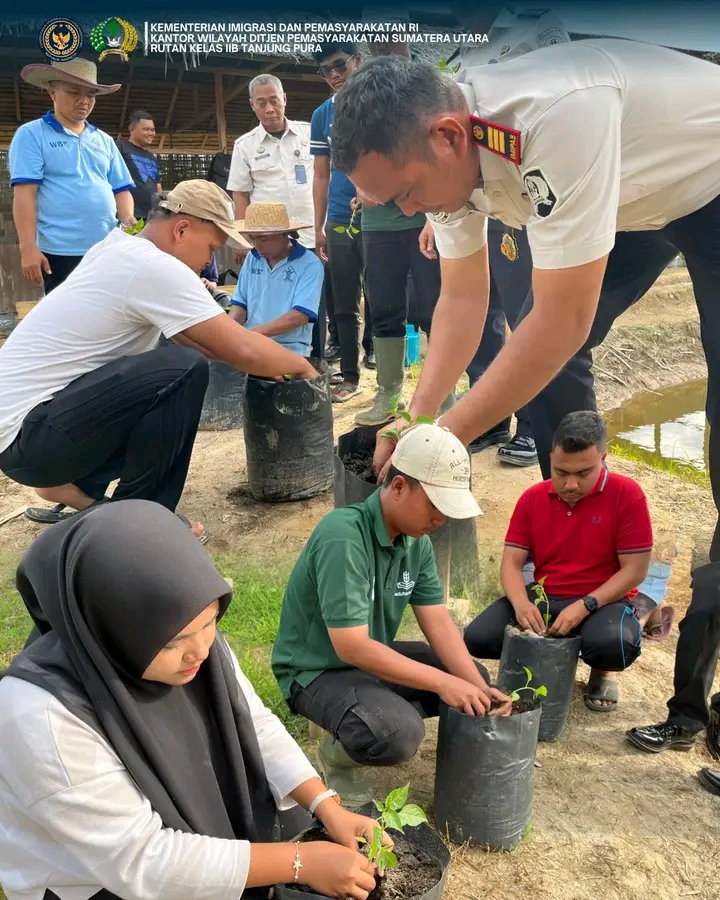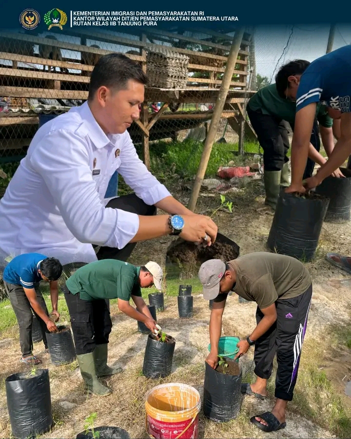 TIMELINES INEWS INVESTIGASI, Rutan Tanjung Pura Rumah Tahanan Negara Kelas IIB Tanjung Pura terus mendukung serta menunjukkan kontribusi dalam program ketahanan pangan nasional sesuai araha Menteri Imigrasi dan Pemasyarakatan melalui program penananam tanaman cabai. Selasa (20/01)