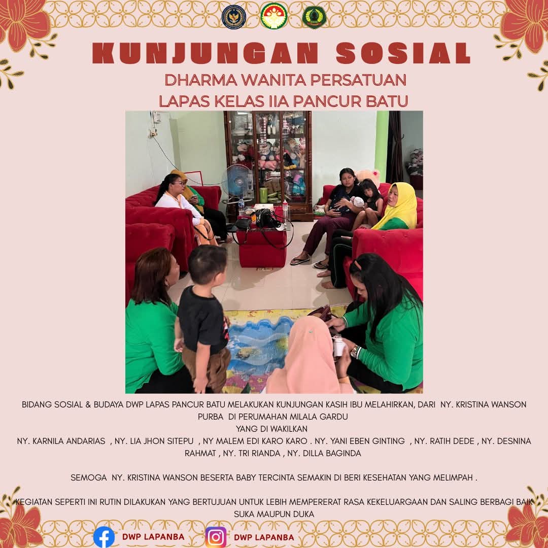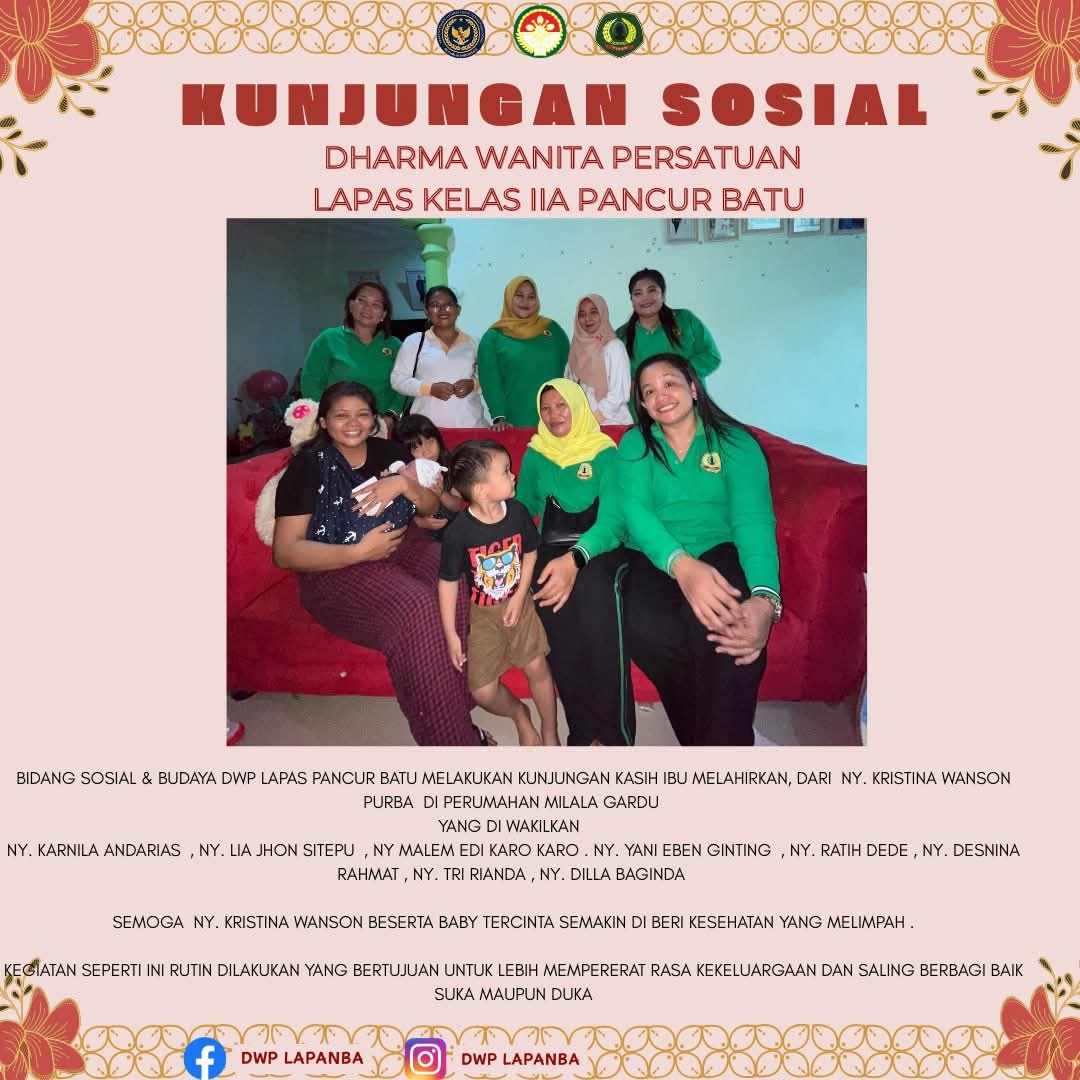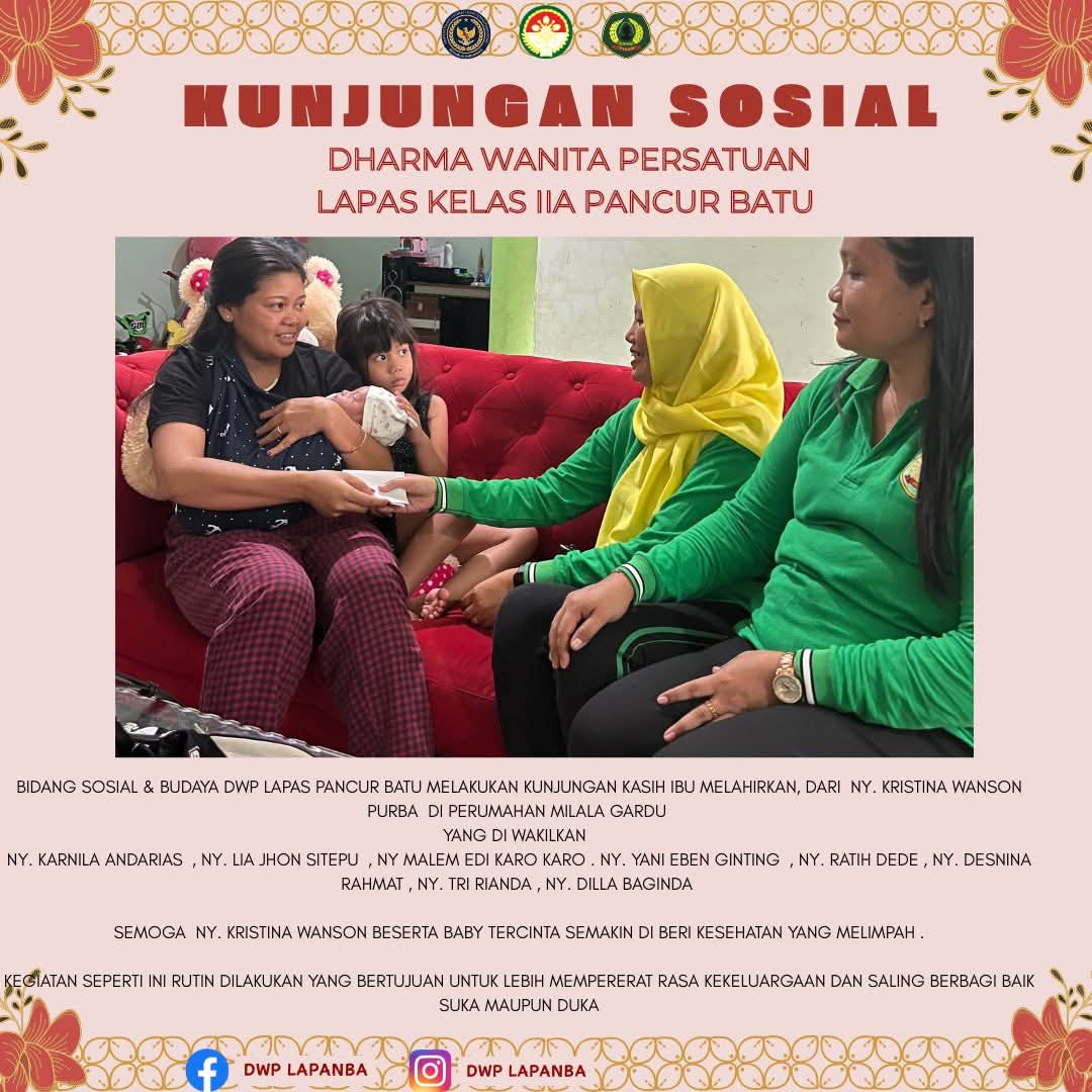 TIMELINES INEWS INVESTIGASI, Lapas Pancur Batu Bidang Sosial dan Budaya Dharma Wanita Persatuan (DWP) Lapas Kelas IIA Pancur Batu melaksanakan kegiatan kunjungan kasih kepada salah satu anggota yang baru saja melahirkan, Ny. Kristina Wanson Purba, di kediamannya di Perumahan Milala Gardu.