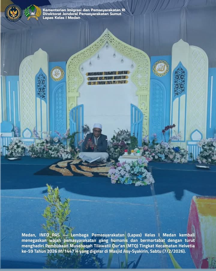 TIMELINES INEWS INVESTIGASI, Medan, Lembaga Pemasyarakatan (Lapas) Kelas I Medan menghadiri Pembukaan Musabaqah Tilawatil Qur’an (MTQ) Tingkat Kecamatan Helvetia ke-59 Tahun 2026 M/1447 H yang digelar di Masjid Asy-Syakirin, Sabtu (7/2/2026),Sebagai wujud komitmen pemasyarakatan yang humanis dan bermartabat.