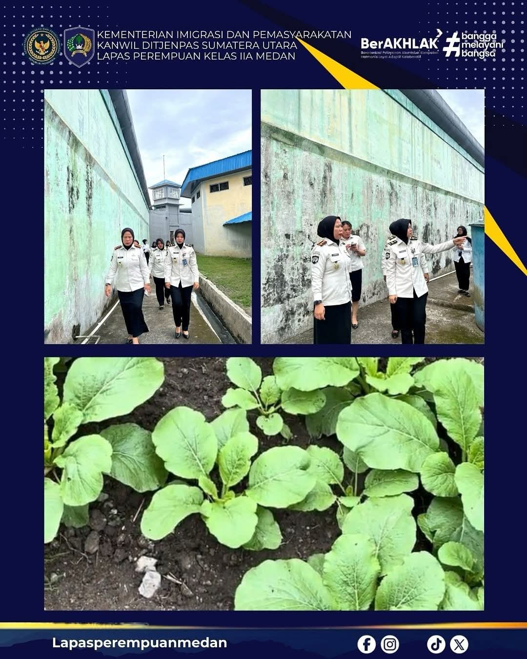 TIMELINES INEWS INVESTIGASI, Medan Kepala Lembaga Pemasyarakatan (Lapas) Perempuan Kelas IIA Medan, Yekti Apriyanti, melaksanakan kontrol rutin di area branggang guna memastikan keamanan dan ketertiban lingkungan lapas tetap terjaga.