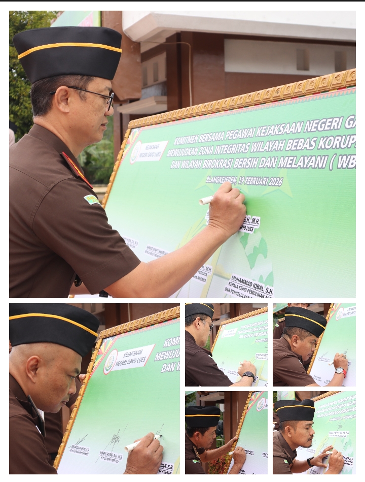 TLii | ACEH | GAYO LUES – Kejaksaan Negeri Gayo Lues menggelar Apel Pencanangan Pembangunan Zona Integritas (ZI) menuju Wilayah Bebas dari Korupsi (WBK) dan Wilayah Birokrasi Bersih dan Melayani (WBBM), Kamis (19/2/2026) pukul 08.00 WIB di halaman kantor setempat.