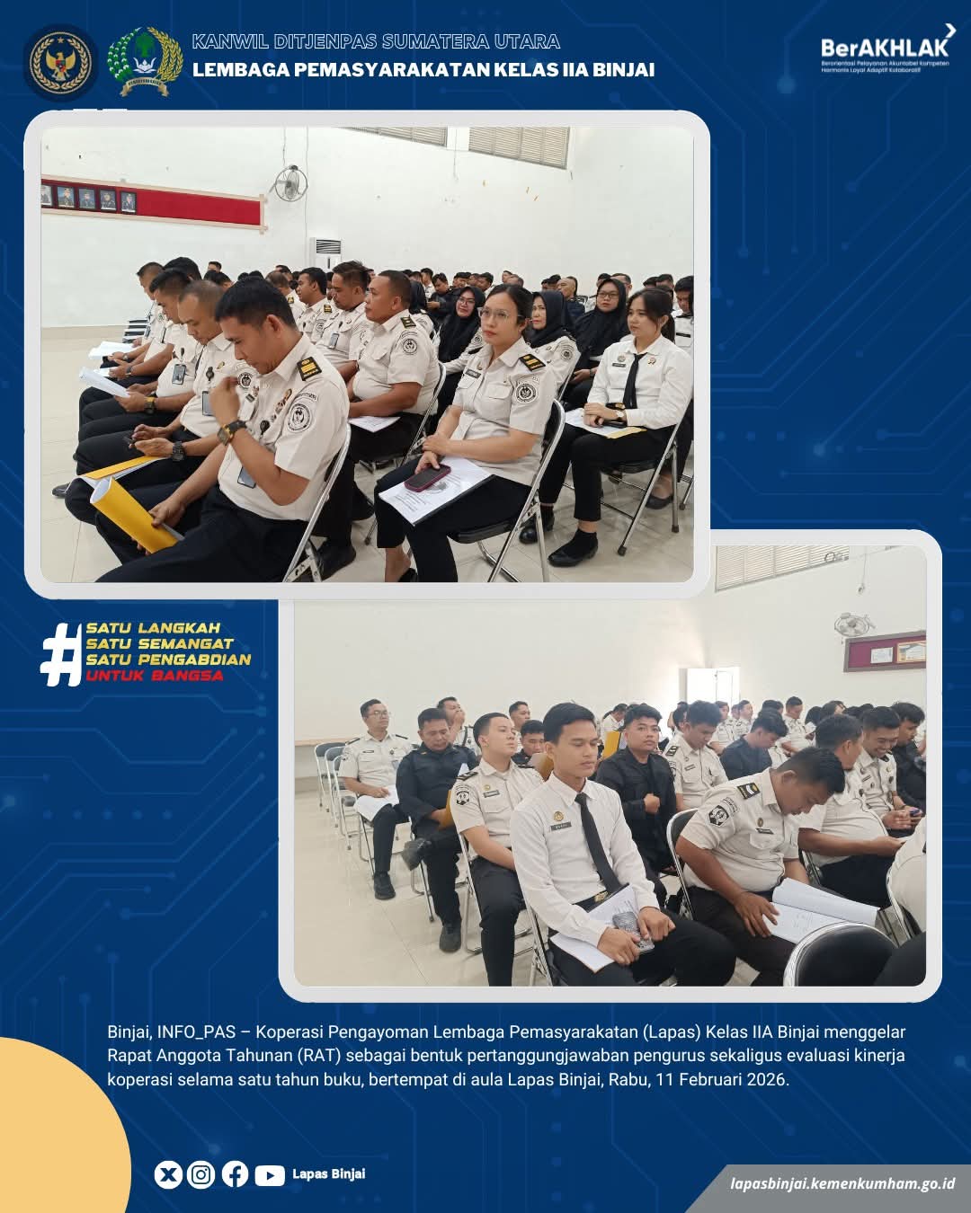 TIMELINES INEWS INVESTIGASI, Binjai Koperasi Pengayoman Lembaga Pemasyarakatan (Lapas) Kelas IIA Binjai menggelar Rapat Anggota Tahunan (RAT) sebagai bentuk pertanggungjawaban pengurus sekaligus evaluasi kinerja selama satu tahun buku, bertempat di Aula Lapas Binjai, Rabu (11/02/2026).