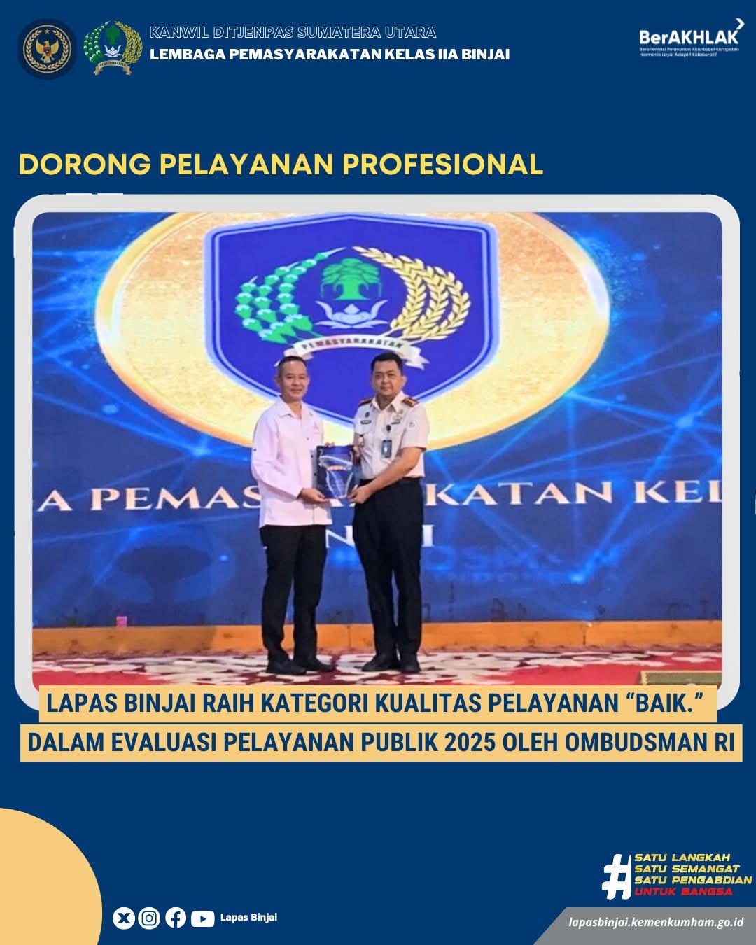 Pencapaian ini menjadi bukti komitmen Lapas Binjai dalam meningkatkan kualitas pelayanan publik kepada masyarakat secara transparan, akuntabel, dan profesional.