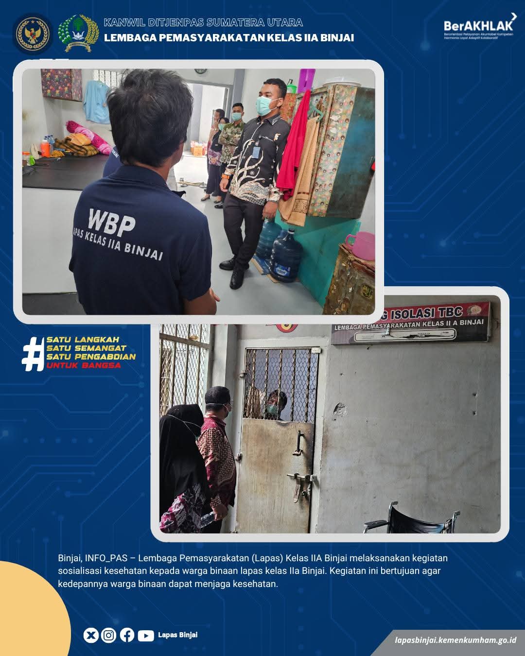 TIMELINES INEWS INVESTIGASI, Binjai Dalam rangka meningkatkan derajat kesehatan sekaligus menjaga stabilitas keamanan dan ketertiban di lingkungan pemasyarakatan, Lembaga Pemasyarakatan (Lapas) Kelas IIA Binjai melaksanakan kegiatan sosialisasi kesehatan dan kontrol blok hunian kepada warga binaan.