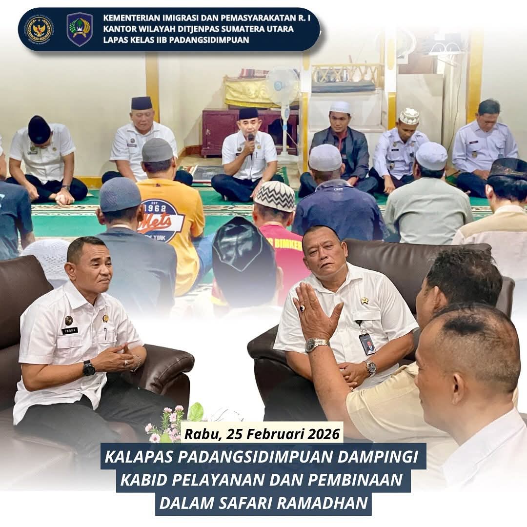 TIMELINES INEWS INVESTIGASI, Padangsidimpuan, Kepala Lembaga Pemasyarakatan (Kalapas) Padangsidimpuan, Indra Kesuma mendampingi Kepala Bidang Pelayanan dan Pembinaan Kantor Wilayah Direktorat Jenderal Pemasyarakatan Sumatera Utara, Indra Kesuma, dalam rangkaian kegiatan Safari Ramadhan di Lapas Padangsidimpuan, Rabu (25/02/2026).