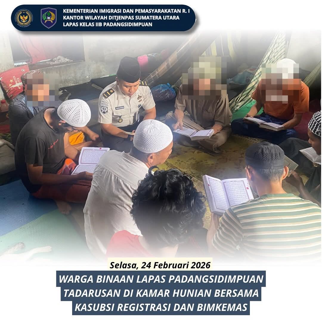 TIMELINES INEWS INVESTIGASI, Padangsidimpuan Dalam upaya memperkuat pembinaan kerohanian, warga binaan Lembaga Pemasyarakatan Kelas IIB Padangsidimpuan melaksanakan kegiatan tadarus Al-Qur’an bersama jajaran pembinaan, yang digelar di kamar hunian pada malam hari.
