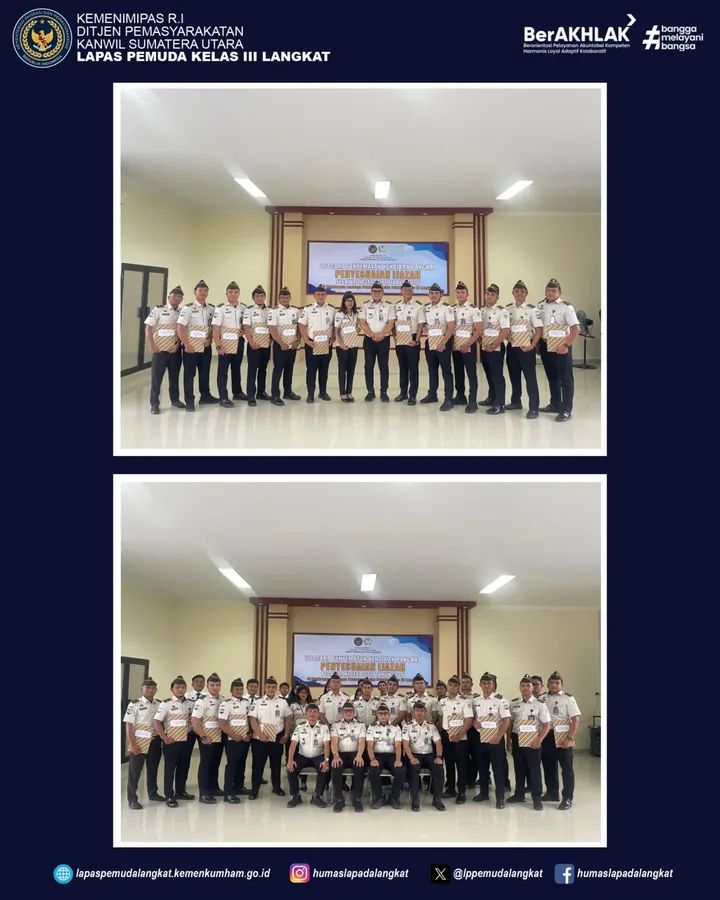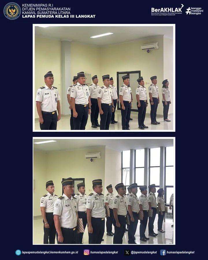TIMELINES INEWS INVESTIGASI, Langkat Lembaga Pemasyarakatan (Lapas) Pemuda Kelas III Langkat melaksanakan Apel Penyematan Tanda Kenaikan Pangkat Penyesuaian Izasah, Rabu (18/03/2026). Bertempat di Aula Gedung 1 Lt.III Lapas Pemuda Langkat. Kegiatan tersebut dipimpin langsung oleh Kepala Lapas Kelas III Langkat, Kenal Purba dan diikuti oleh Pejabat Struktural serta seluruh pegawai Lembaga Pemasyarakatan Pemuda Kelas III Langkat.