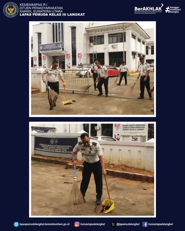 TIMELINES INEWS INVESTIGASI, Langkat Dalam rangka menyambut datangnya Bulan Suci Ramadhan 1447 H, Lapas Pemuda Kelas III Langkat melaksanakan kegiatan kurve bersama antara petugas dan warga binaan pemasyarakatan (WBP) dengan membersihkan area sekitar lapas, pada Rabu (18/02/2025).