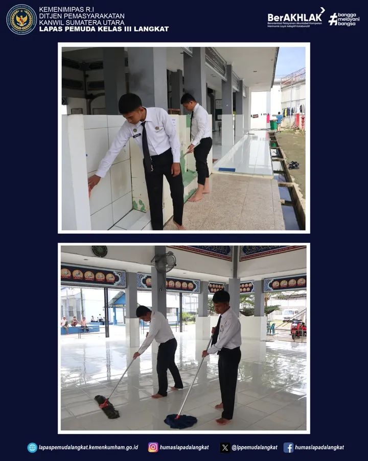 Kegiatan ini dipimpin langsung oleh Kalapas Pemuda Langkat, Kenal Purba yang turut serta bersama jajaran petugas dan WBP dalam membersihkan halaman lapas serta lingkungan Masjid Al-Hadi. Adapun fokus kegiatan meliputi pembersihan halaman, pemangkasan rumput liar, serta pengumpulan sampah di sekitar lapas guna menciptakan lingkungan yang bersih dan nyaman menjelang pelaksanaan ibadah Ramadhan.