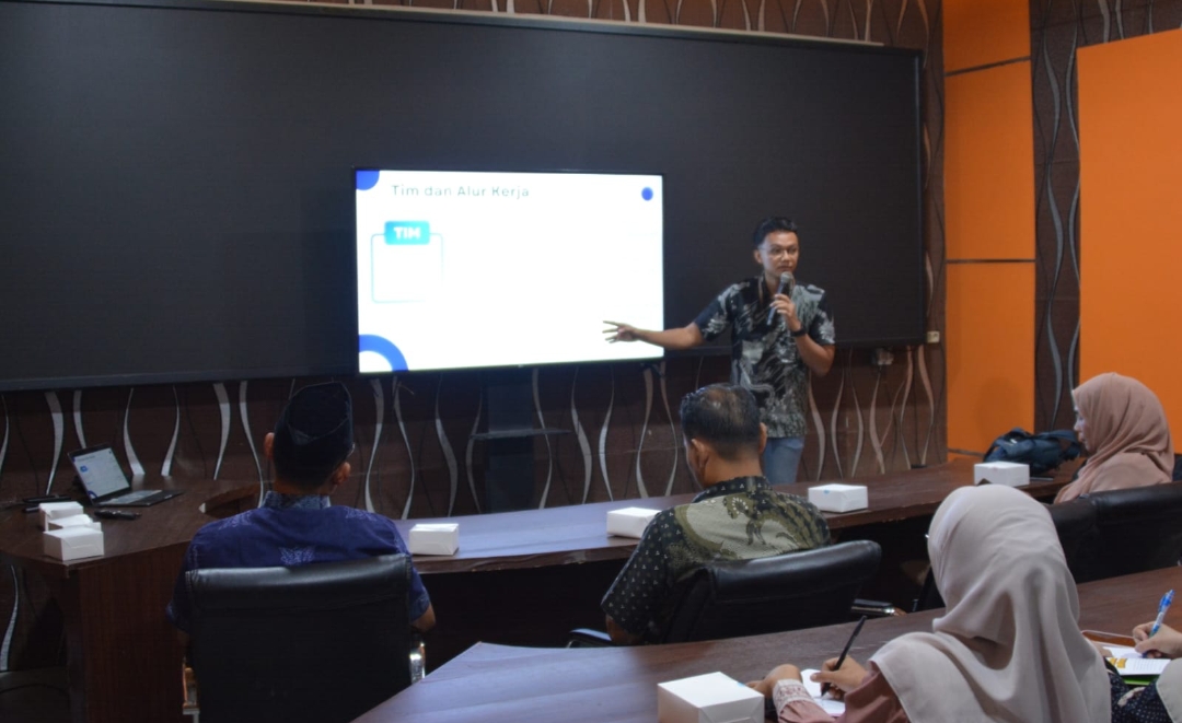 Kepala Dinas Komunikasi dan Informatika Kota Langsa Ade Putra Wijaya Siregar saat membuka sosialisasi Pengelolaan Aplikasi Halo Pemko untuk Optimalkan Pelayanan Publik, (Foto : Istimewa).